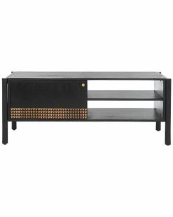- Revitalize your entertainment space with this exquisite Errington 2 Shelf Media Stand. Unapologetically dramatic, Erringtons rows of hand carved natural accents against its jet black finish create a luxe look that emanates couturier chic, while cylindrical legs provide a stylish counterpoint to its starkly angled frame.