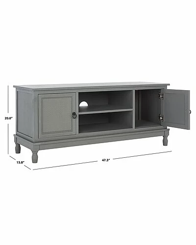 - Redefine tradition with this Haines 2 Door 1 Shelf Media Stand. Brimming with ageless style, Haines refreshes timeless carved details with a distressed grey finish and two subtly textured doors, making it ideal in any classic contemporary entertainment space.
