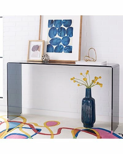 - Make a dramatic modern statement in the entry or living room with this stunning Huck Console Table. Elegantly ethereal, Hucks rounded corners soften its stark lines, and its grey glass creates a luxe look fit for any interior.