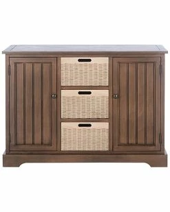 - Classically designed to suit any decor, this Landers 2 Door Console brings storage and style to any busy entryway, hall, or living room. Landers clean lined frame is given a modern touch with its warm brown finish and three natural toned baskets.