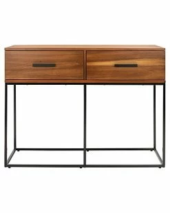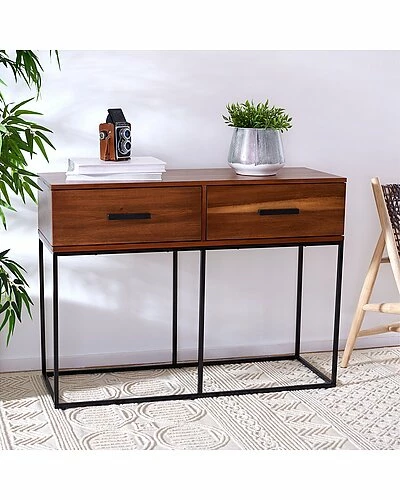 - Refresh the hall or entryway with this bold Marquise Console Table. Marquises open black metal Parsons style frame provides stunning visual depth and serves as an artistic counterpoint to the organic wood grain flowing over its two brown mahogany drawers, instantly upgrading any interior.