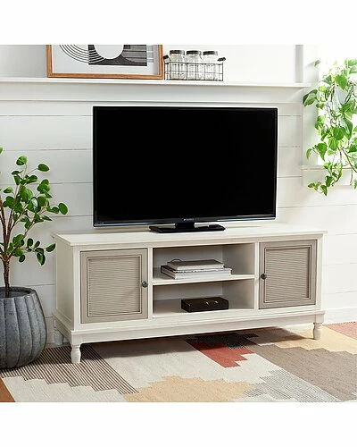 - Bringing a touch of tradition to todays contemporary decor, this Ryder 2 Door 1 Shelf Media Stand is the perfect finishing touch to any entertainment space. Ryders classically designed frame in distressed white is upgraded with the straited details on its two contrasting greige doors, giving additional decorative depth.