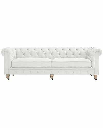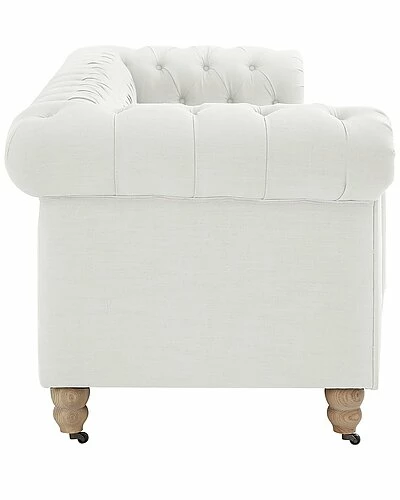 - Design details: add a unique flair to your living room with the traditional design button tufted sofa. it adds a perfect touch of class to any living room setting. built to last, this 92 sofa is expertly crafted with a solid wood and plywood frame, upholstered in linen fabric. the bulky scroll arms complement many home decor styles and solid bun shape legs with casters provide easy maneuvering it from one place to another. piped seat cushions are removable. it is the perfect piece to reflect your regal taste and dress up your living space with luxurious opulence.