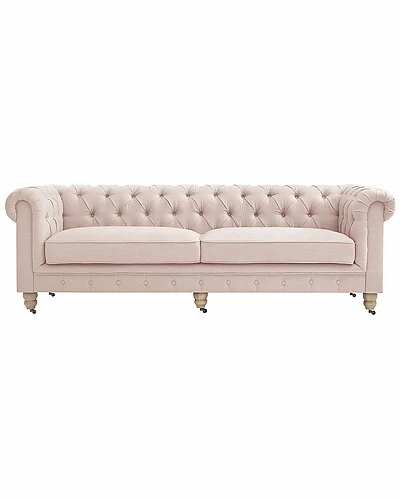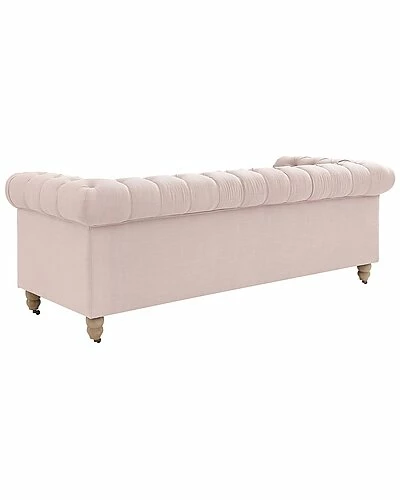 - Design details: add a unique flair to your living room with the traditional design button tufted sofa. it adds a perfect touch of class to any living room setting. built to last, this 92 sofa is expertly crafted with a solid wood and plywood frame, upholstered in linen fabric. the bulky scroll arms complement many home decor styles and solid bun shape legs with casters provide easy maneuvering it from one place to another. piped seat cushions are removable. it is the perfect piece to reflect your regal taste and dress up your living space with luxurious opulence.