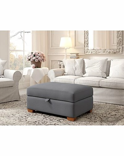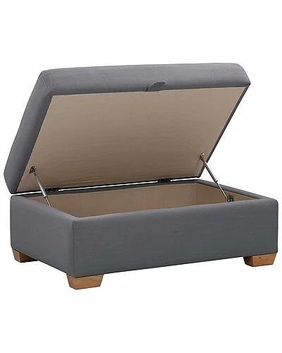 - Decorate your home with this elegant ottoman that not only provides amazing storage options but also serves as occasional seating. Rectangular storage ottoman gives a very neat and classic visual in any area in your home. This smart piece offers a cleaner surrounding with its wide storage options. Crafted from solid and manufactured wood, it features linen upholstery and a foam cushion which is perfect for seating. This ottomans style blends well with any existing decor, making your home more elegant and neat-looking.