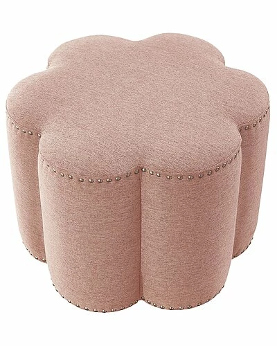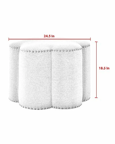 - This decorative flower shaped ottoman is a great piece to enhance out your interior styling. It is upholstered in crisp linen fabric. High-quality foam brings out the best purpose for multiple uses. Constructed of solid and engineered wood, it has nailhead trim to complete the aesthetic look of any place you put it in. Give comfort and glam to your home’s interior with this ottoman, adding class and elegance to any space in your living room, makeup room or bedroom.