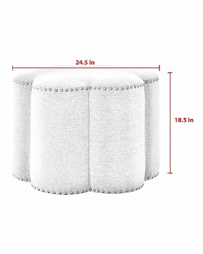 - This decorative flower shaped ottoman is a great piece to enhance out your interior styling. It is upholstered in crisp linen fabric. High-quality foam brings out the best purpose for multiple uses. Constructed of solid and engineered wood, it has nailhead trim to complete the aesthetic look of any place you put it in. Give comfort and glam to your home’s interior with this ottoman, adding class and elegance to any space in your living room, makeup room or bedroom.