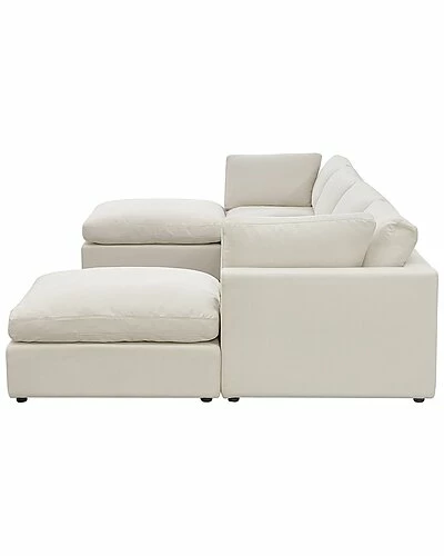 - Bring a fresh inspiration to a room with the cozy modular U-chaise sectional. Its cloud puff look brings a relaxing feeling to the sofa collection. It can fit any design theme: casual, contemporary, rustic, urban, industrial. the cloud sofa will help you to create that ultimate laidback lounge. The contemporary low frame design makes it ideal to bring your open living space together. the superior construction makes an unforgettable seating experience: wood and solid wood frame, sinuous spring, linen upholstery, feather, fiber and foam filling. You can enjoy a deep seating with plush cushions. Perfect for watching TV or taking a nap in the living room all day. This is simply the best family room furniture ever. Seat and back cushions are removable. Blending casual design with a touch of contemporary flair, we offer a swivel chair to match, which is a perfect finishing touch to create a dynamic and cozy interior home space. Soft pillows, flared arms, rounded lines, durable linen upholstery, 360 degree gliding swivel base make a brilliant combination for a perfect contemporary statement piece. The frame is made of combined solid wood and manufactured wood, which makes construction to be firm and stable, and sinuous springs give a nice support as you sit. Care instructions – spot clean only.