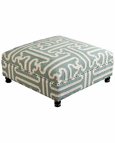 - Bench-made green wool Greek key ottoman with brass nail heads