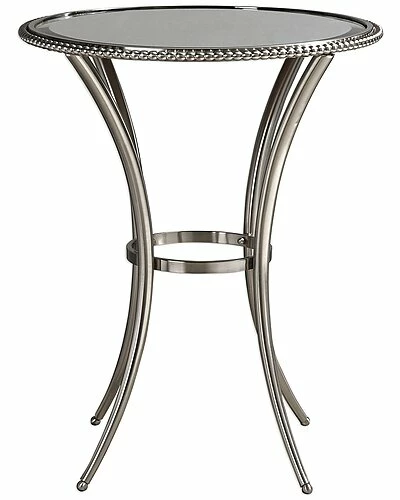 - Design details: a beaded metal trim paired with a beveled mirror top make a classic accent, along with tapering arched legs and ball feet in a plated brushed nickel finish.