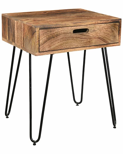 - Design details: Accent tables are styled to accentuate their surroundings, but this one of a kind table attracts attention all on its own. Breaking conventional molds by seamlessly blending rustic charm and modern solidity all into one visually stunning piece, this table incorporates a rich mango wood with a functional drawer on wooden glides. Flawlessly constructed, it is further adorned with cast iron hairpin legs outfitted in a beautiful rustic black. The stark contrast of both metal and natural wooden elements lend spectacularly to creating visual interest in any room of the home, while the one of a kind natural burnt finish created by hand-scorched detailing ensures that each table has its own unique artistry that will set it a notch above the rest.