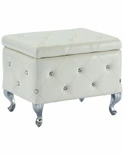 - Design details: A storage ottoman can be a lavish touch to any home decor ensemble, but this ottoman is truly a one of a kind statement piece. With plush velvet upholstery, a beautiful diamond patterned stitching detail, and sparkling crystal button tufting, youll think this piece came straight off of a fashion runway. Add to it the cabriole style legs with a chrome finish and this ottoman is sure to dazzle from any angle. Attention to detail is in all of the finishes as it includes a deep multi-purpose storage compartment and safety stop hinges to ensure that closing this ottoman will feel as soft and luxurious as it looks. Whether using it for storage or plush seating, this ottoman is sure to turn any ordinary room into something palatial. Perfect for the end of a bed to add some bling to your bedroom. Or place a clear tray on top and use as an elegant coffee table.